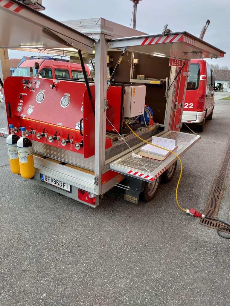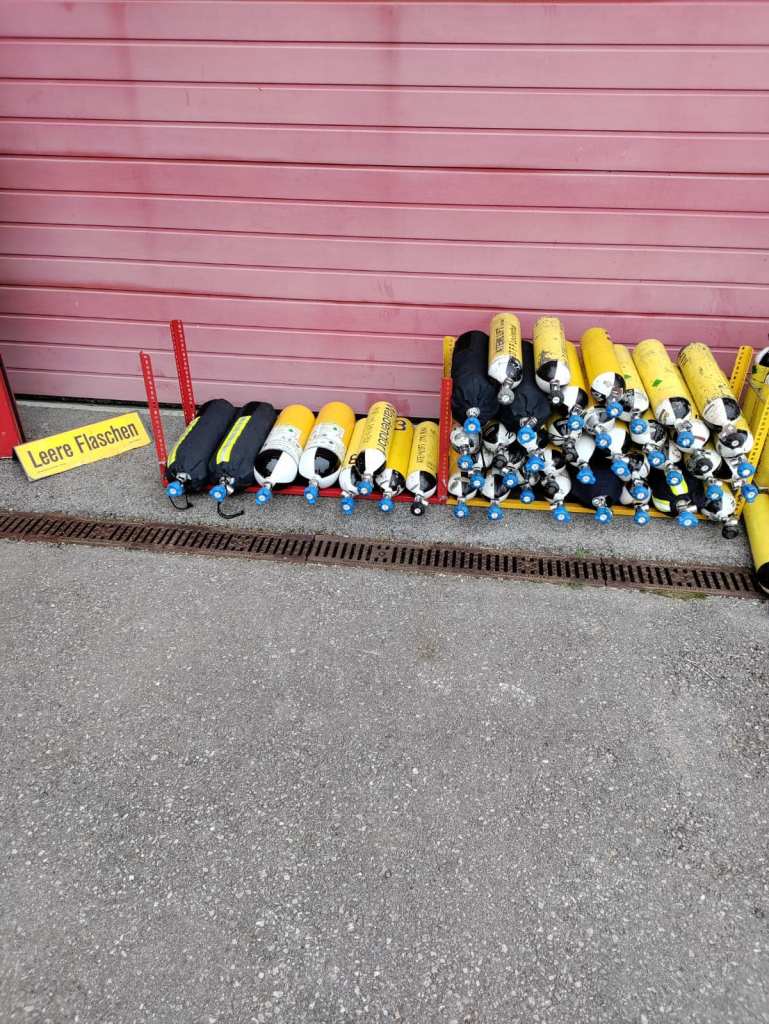 Zusätzlich waren wir mit dem Atemluftkompressor ALA4 vor Ort und füllten die leeren Atemschutzflaschen.