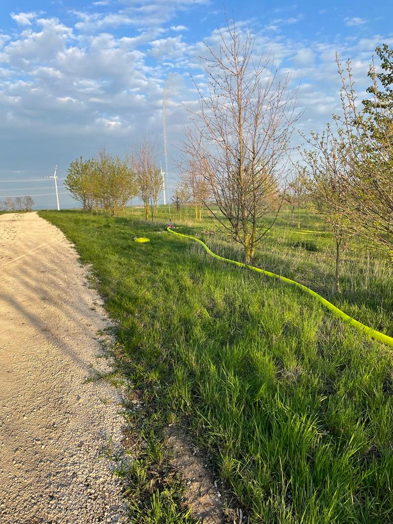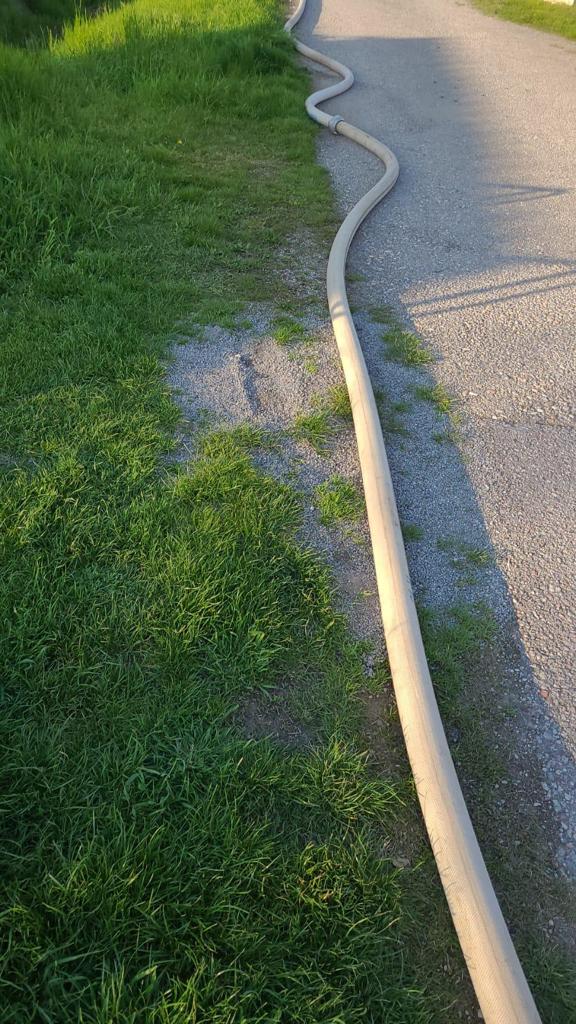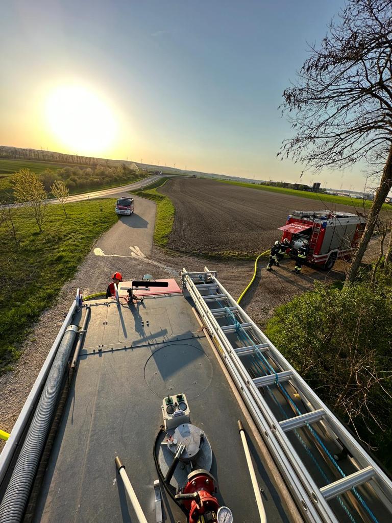 Insgesamt drei TLF stehen bei der Brandbekämpfung im Einsatz und werden sowohl im Pendelverkehr, als auch über eine Versorgungsleitung, die von den Feuerwehren des Unterabschnittes verlegt wurde, gespeist.