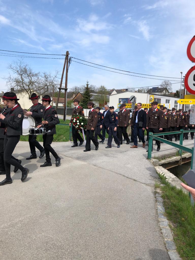 Kommandant OBI Lukas Emminger konnte 45 Mitglieder unserer Feuerwehr begrüßen. Unter Begleitung der Ortsmusik wurde in die Kirche marschiert und anschließend ein Kranz niedergelegt. Danach konnten unsere Kameradinnen Leoni Aigner und Nadine Stecher vom Kommandanten angelobt und von der Feuerwehrjugend in den Aktivstand versetzt werden. Wir danken für die bereits einige Jahre dauernde Mitgliedschaft und hoffen auf viele weitere bei den Aktiven.