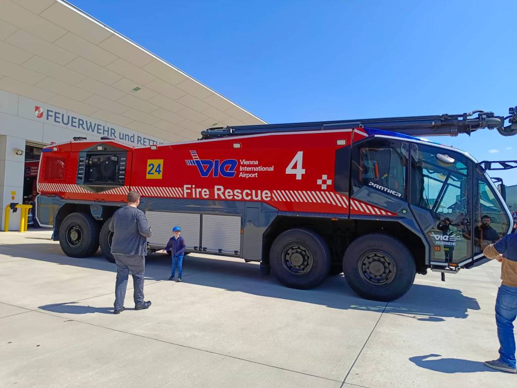 Am Vormittag trafen sich die Gewinner bei der Besucherwelt und es ging gleich los mit der Führung, auch eine Busfahrt am Flughafengelände war dabei! Anschließend ging es weiter zur Flughafenfeuerwehr, wo die Belegschaft für die Gäste ein Mittagessen vorbereitet haben. Im Anschluss durften die Jugendlichen den besonderen Fuhrpark bestaunen und sich auch in die Fahrzeuge setzen und mit den Kameraden der Feuerwehren Informationen austauschen.