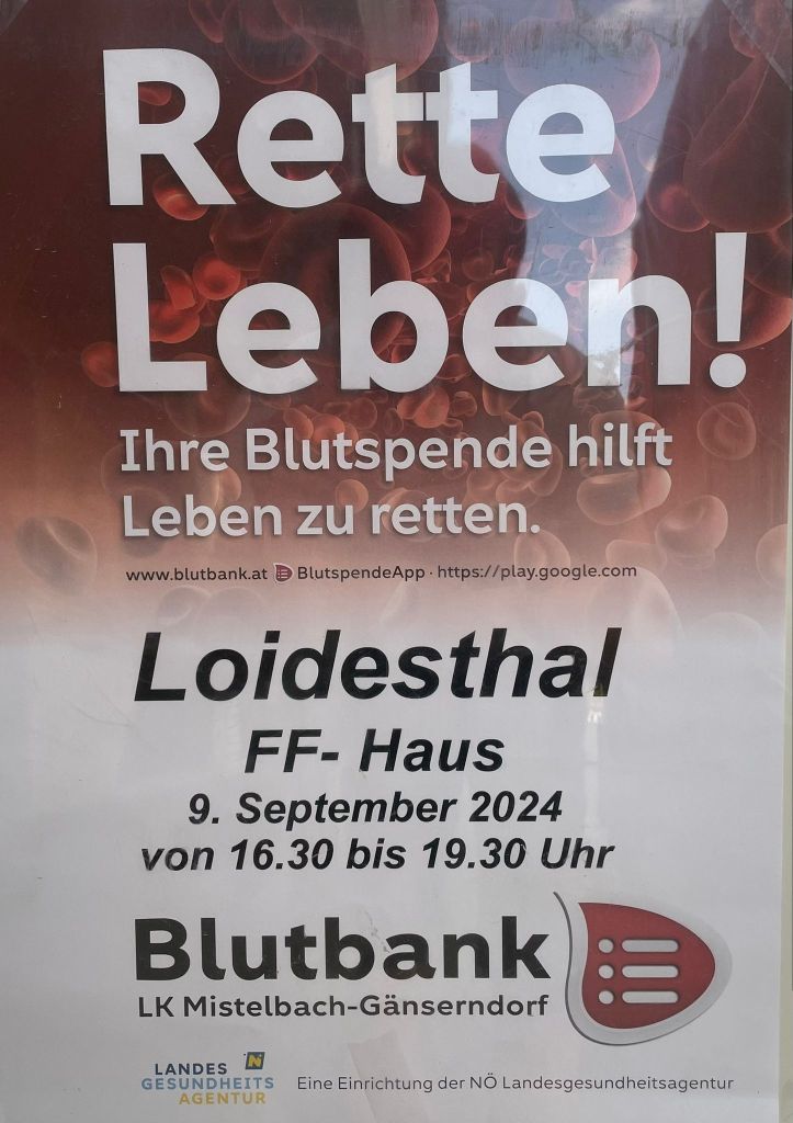 Am 09.09.2024 findet wieder ein Blutspenden im FF-Haus statt. Beginn 16:30 bis 19:30 Uhr.